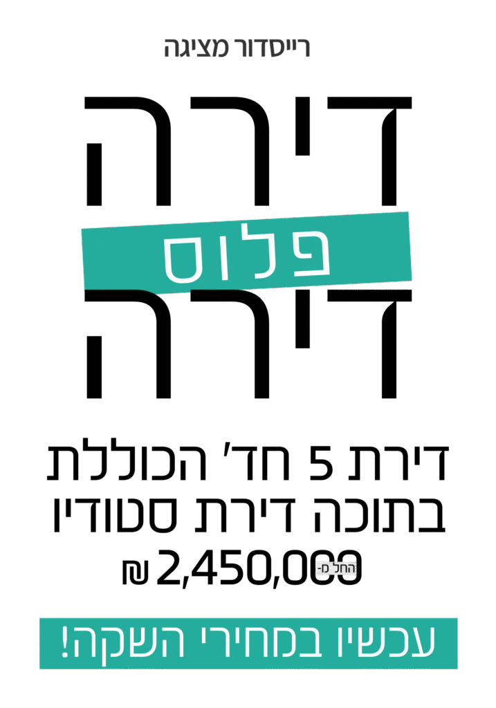 * ידוע לי כי בהשארת פרטי האישיים אני מאשר/ת קבלת שיחת טלפון שיווקית וחומרים פרסומיים בנוגע לפרויקטים מחברת רייסדור וזאת גם אם ועל אף שפרטיי נמצאים במאגר "אל תתקשרו אלי" של הרשות להגנת הצרכן. הדמייה להמחשה בלבד. בכפוף לתקנון החברה טל״ח. מדיניות פרטיות